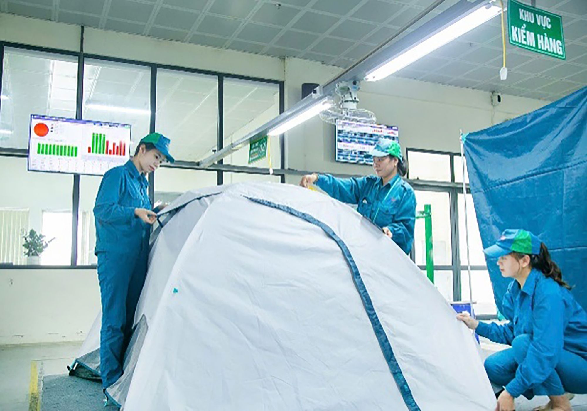 Nếu như trước đây, khi chưa có dây chuyền công nghệ này, thì việc sản xuất ra một chiếc túi phải tốn rất nhiều thời gian, nhiều công đoạn. Từ việc khâu túi, dán tem, gắn quai cơ bản là làm thủ công, mỗi phân xưởng đảm nhiệm một khâu, túi được vận chuyển qua lại giữa các phân xưởng nên tốn nhiều thời gian, nhân công và không bảo đảm sự đồng đều về chất lượng. Từ 700 người may thủ công nay chỉ còn 20 công nhân là đã có thể điều hành, quản lý vận hành dây chuyền sản xuất. Tất cả các công đoạn được rút ngắn, tất cả các công việc được thu gọn. Giờ đây, công nhân chỉ việc đưa phôi vải vào là máy sẽ tự động dán tem, gắn quai và sau đó tạo hình đúng kích thước theo yêu cầu.